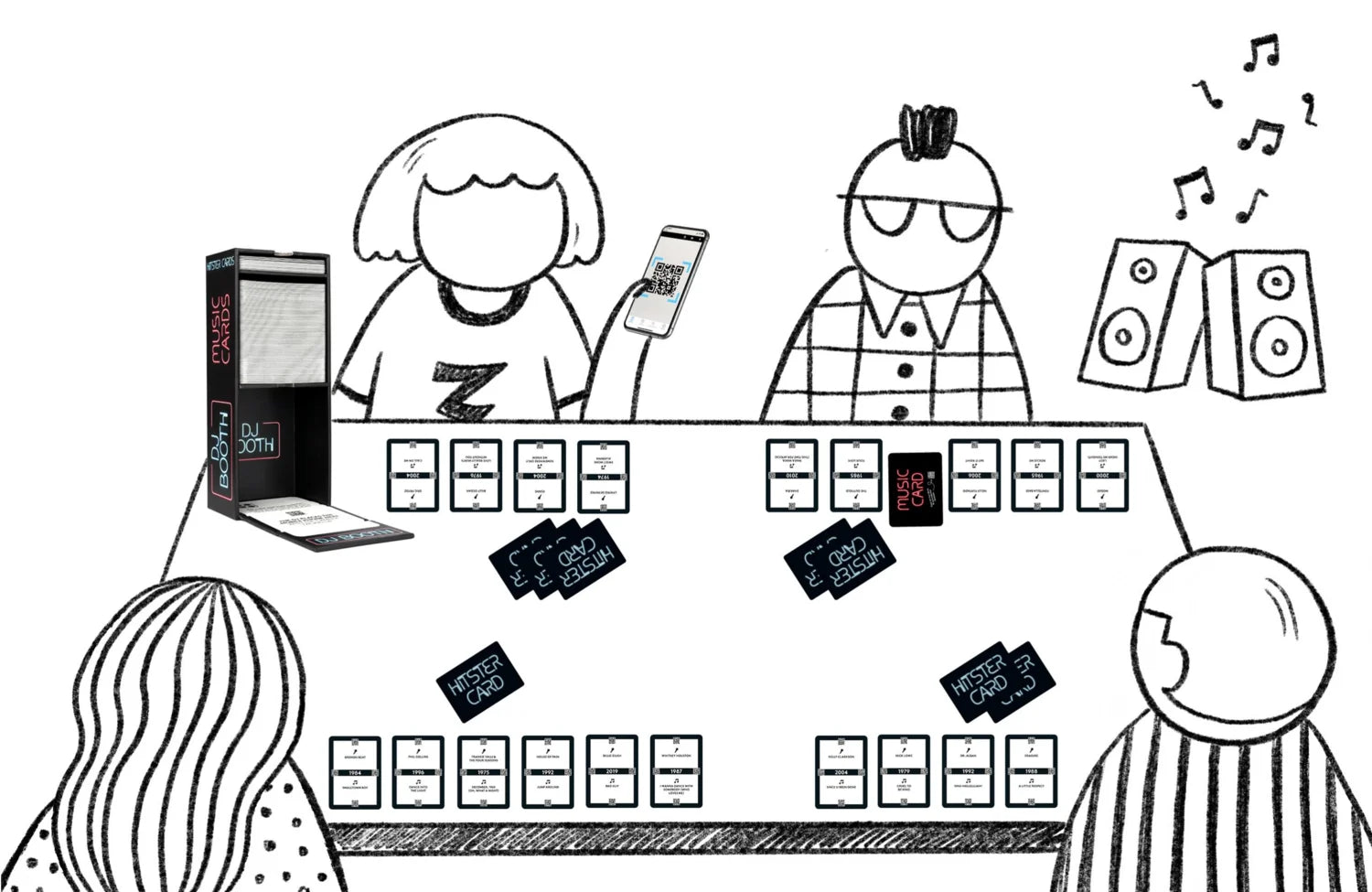 Hitster är ett fartfyllt musikspel där du använder din mobil för att spela låtar och gissar när de släpptes. Målet är att placera låten i rätt kronologisk ordning på din tidslinje. Ju fler rätt, desto närmare vinst!